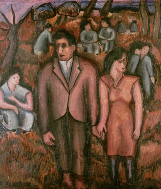 Looking at those already so sure drawings, in which an adolescent holding a book in his nervous hands evokes in us something so intimate like the atmosphere of a bedroom and so unreachable as a symbol, looking at those paintings so astonishingly lacking all distraction that separates them from their dominant centre, of no one knows what set and invisible fire, looking at the concentrated light of those very Cuban purples, that like the ends of some of Martí’s letters remain with us for always without being able to forget them…. Looking at his groups of workers, his reflexive young people, we think of the verses by Rubén Martínez Villena – from his same time and with his same accent, dead like him, too young – “And what am I doing here / where there is nothing important to do?” Arístides Fernández took another road and went toward another unknown, and in his drive and his detention it shines and remains.