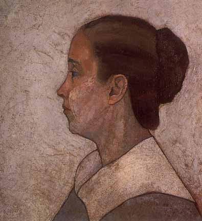These opinions can be confirmed in a work like Retrato de la madre (2) (Portrait of the Mother [2]), today in the collection of our Museum of Fine Arts. There, the woman’s profile stands out on a white background, which emphasises the sensation of austerity and seriousness that the character produces; the painter has reproduced his model in such a way that the weight, materiality of the figure is evinced at the same time as her will to rest, which is strengthened by the slightly sad look of those blue eyes, designed to characterise the model based on a single revealing detail of her interiority. There are no accessory objects, nor details that relate a specific situation, the person has been isolated to concentrate – it seems – the attention of the spectator on the model and particularly in the defining of her character.
