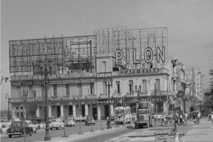 Frente al Café, por la calle San Lázaro, donde hoy se ubica la Secundaria Básica José Martí, se encontraba el Hotel Manhattan rematando la esquina de los números impares, con su famosa farmacia en los bajos. Dicen que la dueña de aquel hotel le regaló al presidente José Miguel Gómez, cuando su toma de posesión, una bellísima silla de caoba labrada con el escudo de la República. Al lado del Café, allá por las décadas de los cuarenta y cincuenta, se hallaban dos edificios hoy desaparecidos, en sus plantas bajas estaban la tienda de artículos religiosos católicos Liban y una sucursal de la dulcería La Gran Vía, en cuyo interior, que era pequeño, había una graciosa pintura mural que representaba, prácticamente flotando sobre una línea de tren, un cake de bodas con su pareja de novios encima.