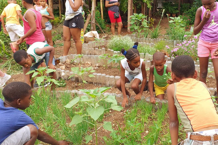 La producción de alimentos en huertos localizados en las instituciones constituye una expresión de Responsabilidad Social Empresarial, con la participación de estudiantes y fuerza laboral contratada. Foto: Cortesía proyecto Akokán