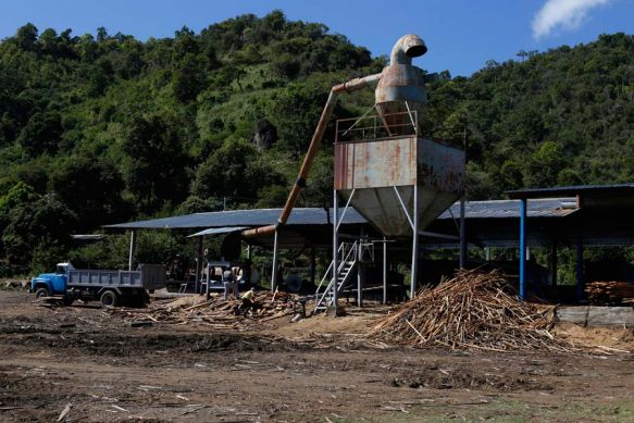 – Un ruido ensordecedor y nubes de polvo rodean a los trabajadores que con viejas máquinas cortan tablones de un ancho tronco transportado hasta el aserradero de Guamá, un municipio montañoso y costero en el este de Cuba.