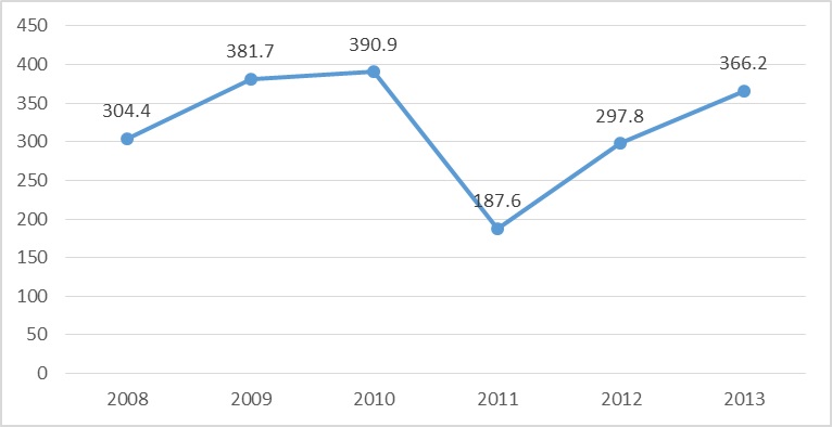 Figure 3. Export of generic and biotechnological medicines, in millions of USD. From 2006 to 2013