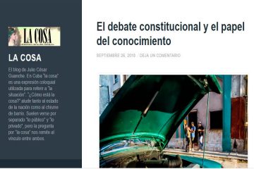 Se trata de La Cosa, una bitácora que desde 2013 agrupa textos del ensayista Julio César Guanche sobre democracia, socialismo y república.