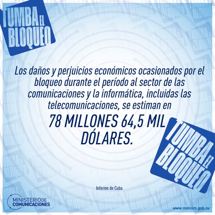 Datos del informe, compartidos por el Ministerio de las Comunicaciones en sus redes digitales, apuntan que “los daños y perjuicios económicos ocasionados por el bloqueo al sector, durante el periodo del primero de marzo de 2024 hasta el 28 de febrero de 2025, se estiman en 78 millones 64,5 mil dólares”,