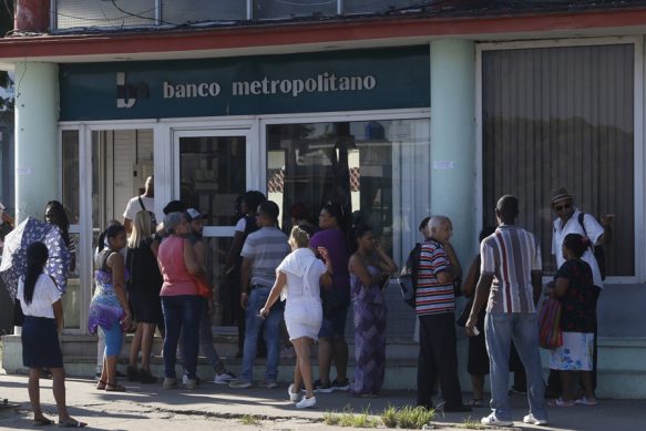 La gente acudió masivamente a los bancos cubanos para abrir las cuentas en divisas libremente convertible, que servirán de respaldo a las tarjetas con que podrán hacer compras en las tiendas minoristas con la nueva oferta.