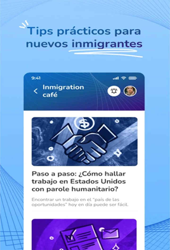 Con una actualización del pasado 15 de octubre, la propuesta digital tiene versiones iOS y Android en inglés y español y dispone de una serie de prestaciones para la actualización, información o gestión de trámites migratorios hacia o en los Estados Unidos.