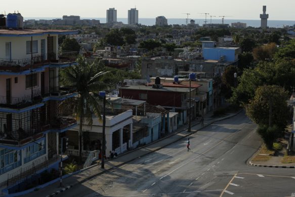 A lo lejos, una mujer camina por una calle solitaria de La Habana por el aislamiento social que se ha impuesto en casi todos los países de América Latina por la pandemia de covid-19. Un contexto que ha incrementado las agresiones callejeras contra las mujeres en la región, mientras dentro de los hogares sube la violencia de género, con las víctimas obligadas a permanecer confinadas junto con sus maltratadores.