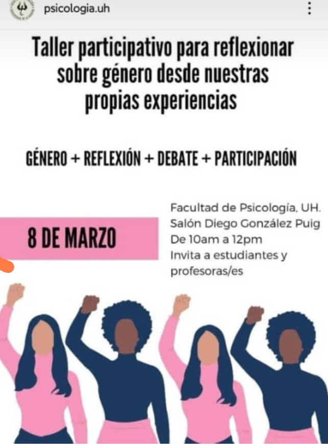 Por su parte, la Facultad de Psicología de la Universidad de La Habana realiza con docentes y estudiantes el Taller participativo para reflexionar sobre género desde experiencias propias.