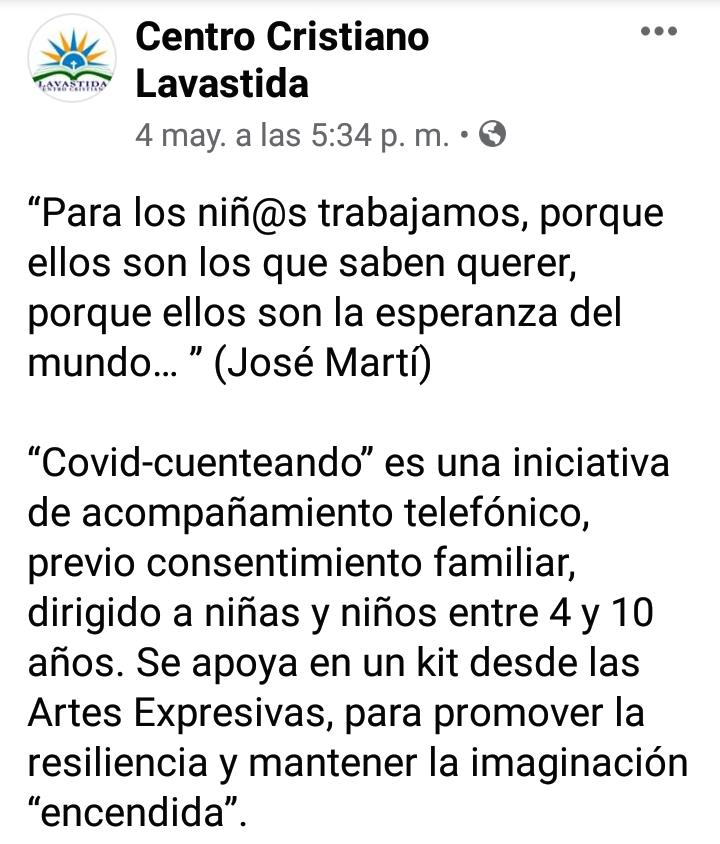 Desde el grupo de apoyo psicosocial Acercarte, del Centro Cristiano Lavastida, que desde esa ciudad despliega acciones en toda la región oriental y Camagüey, surgió la idea de trascender la impresión de la obra y convertirla en un acompañamiento telefónico.